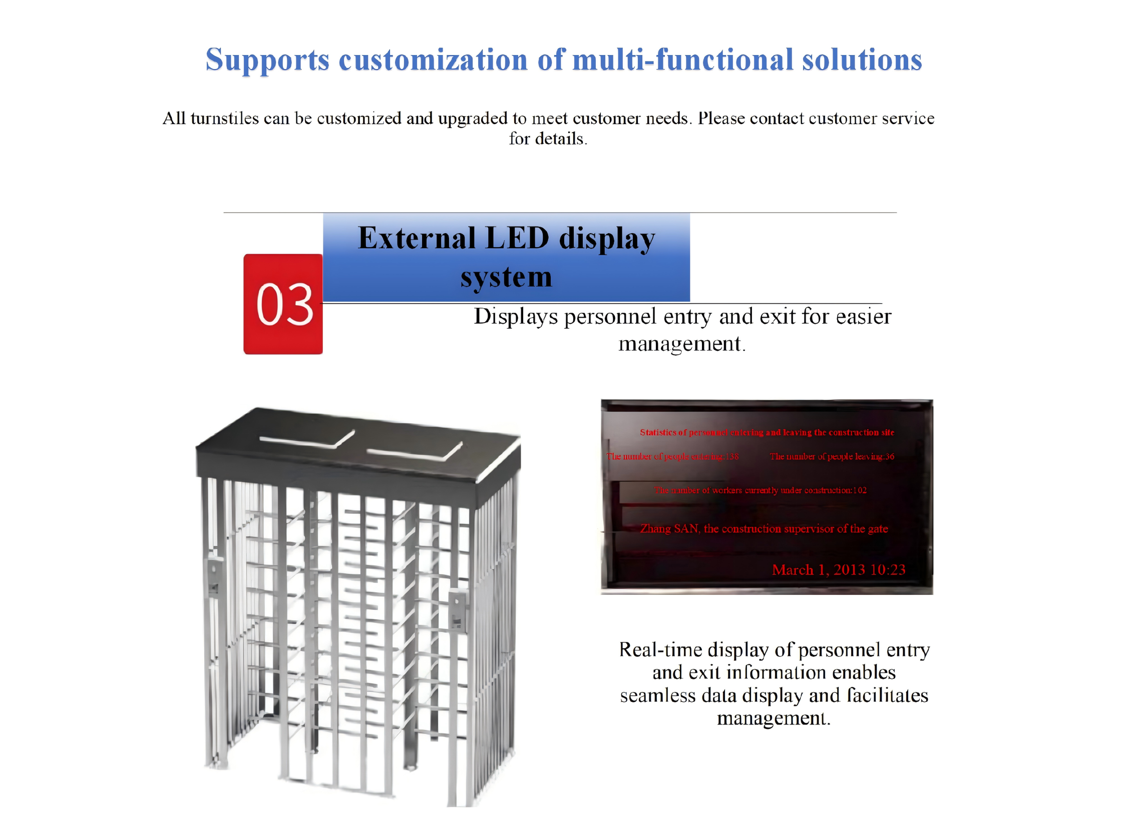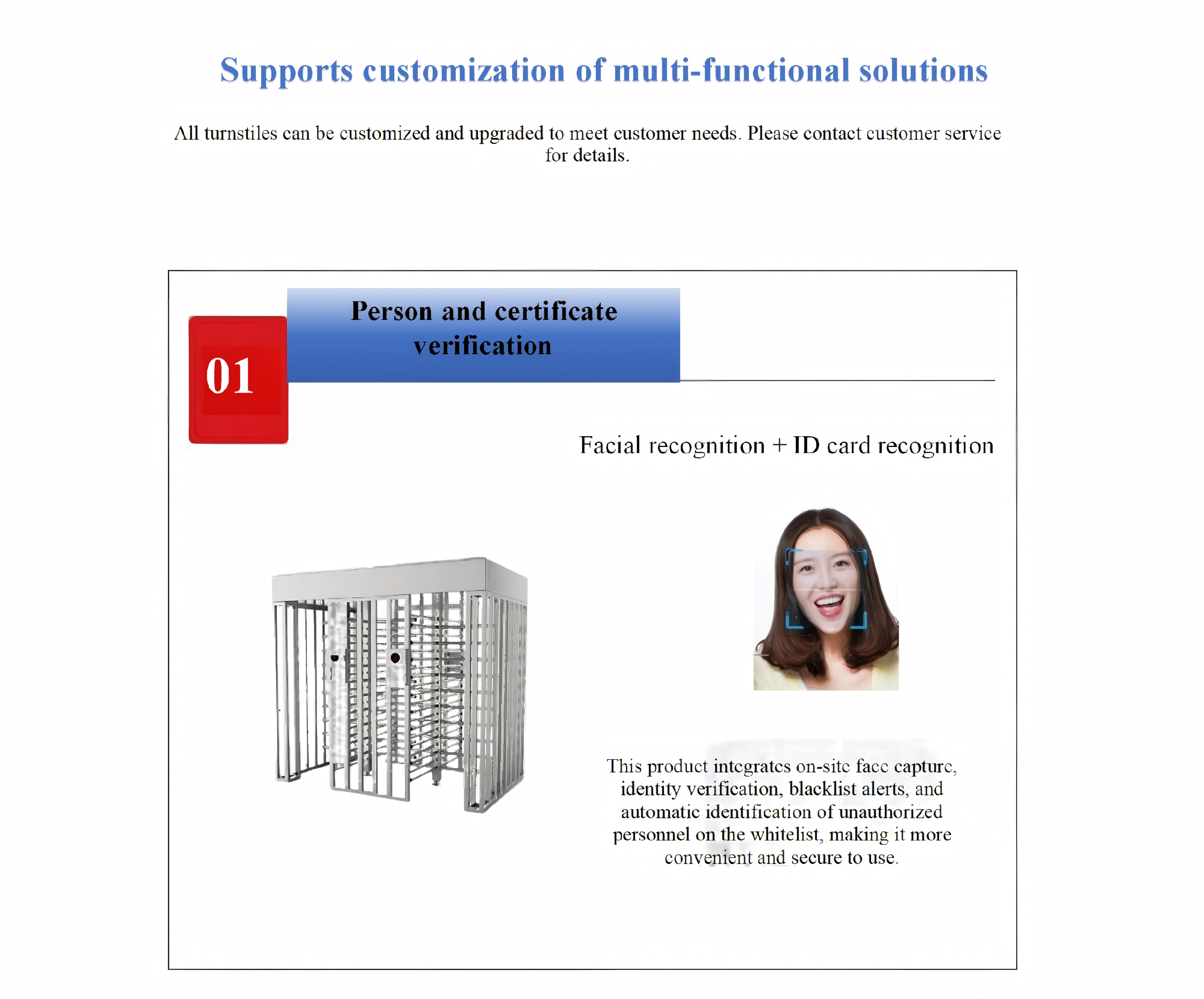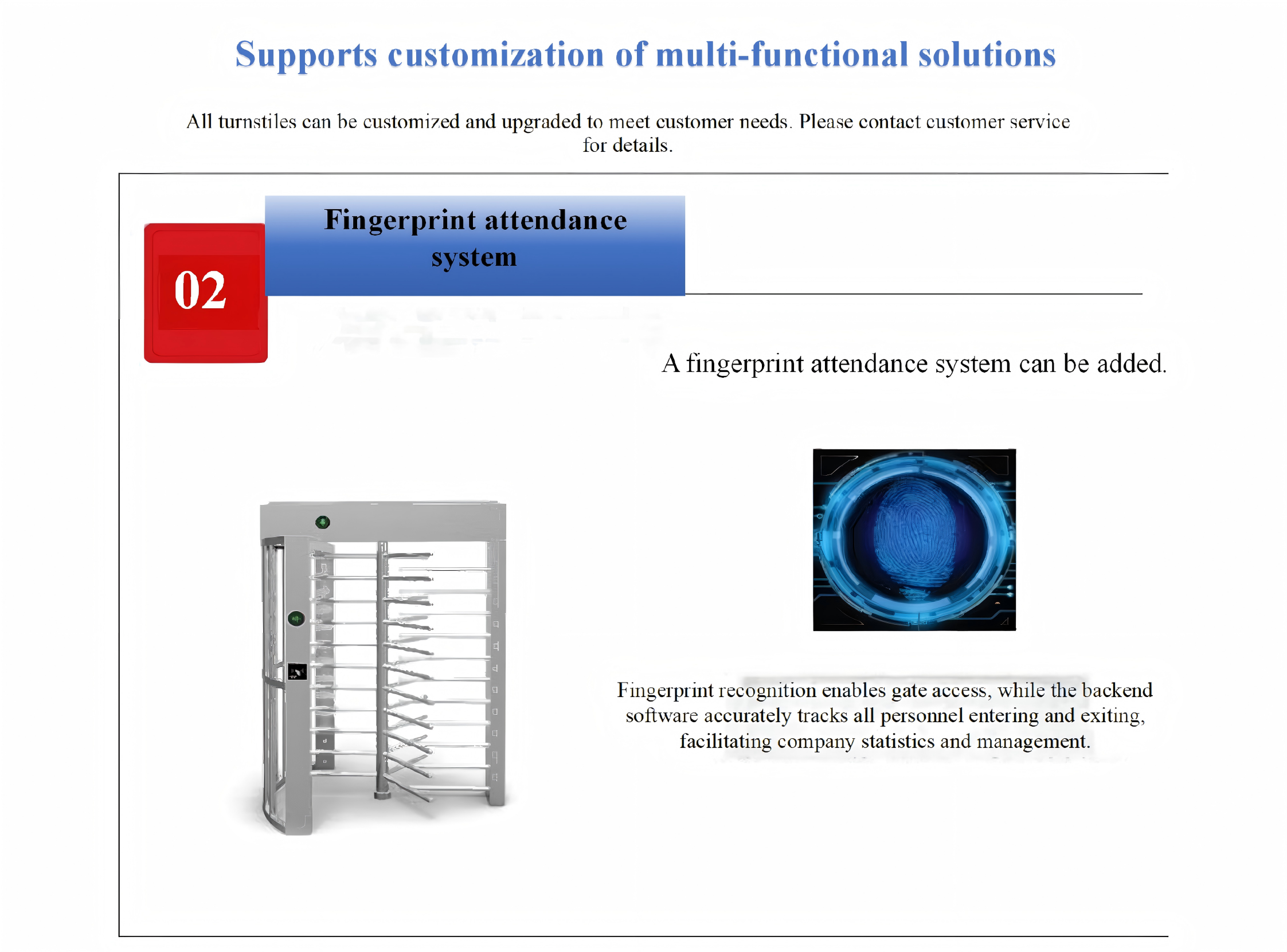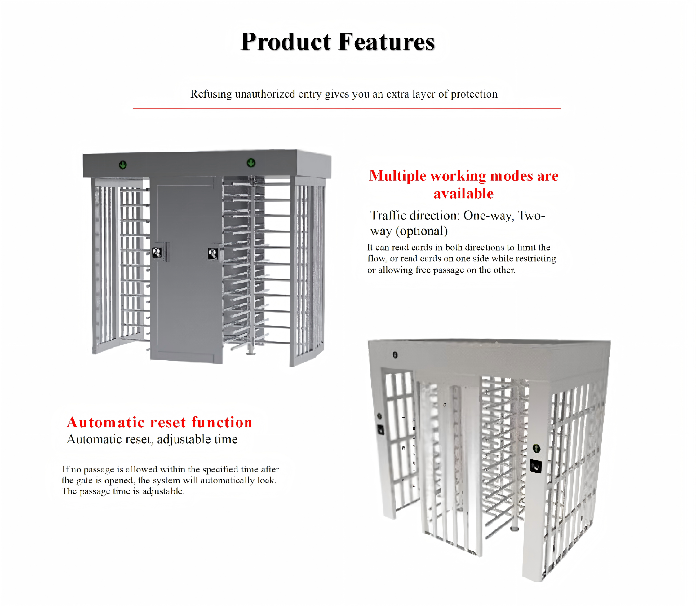 - Passage speed :40 people /MIin(normally open) 25-30 people/Min (normally closed)