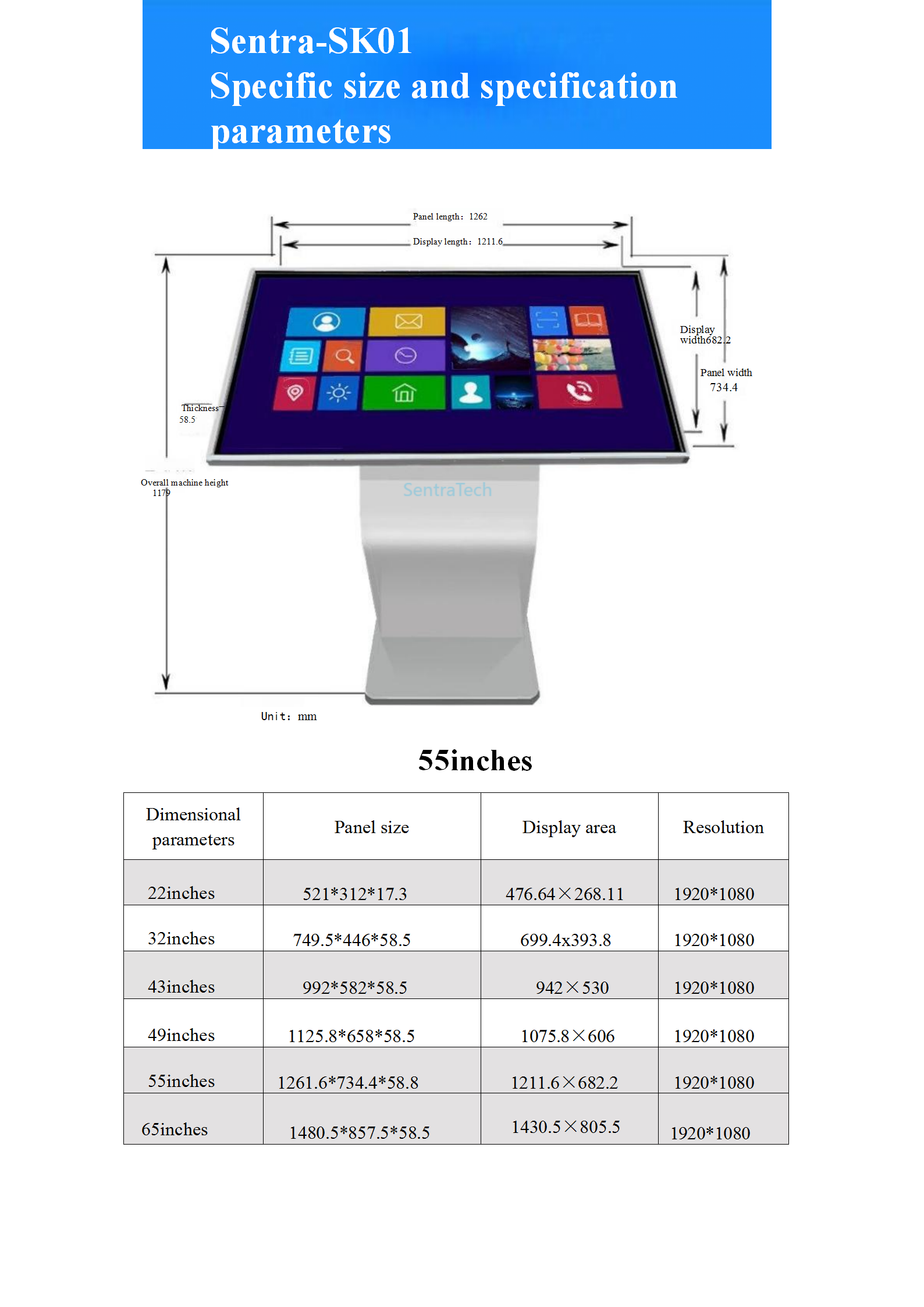 - Specification :Pavilion standing screen, touch screen