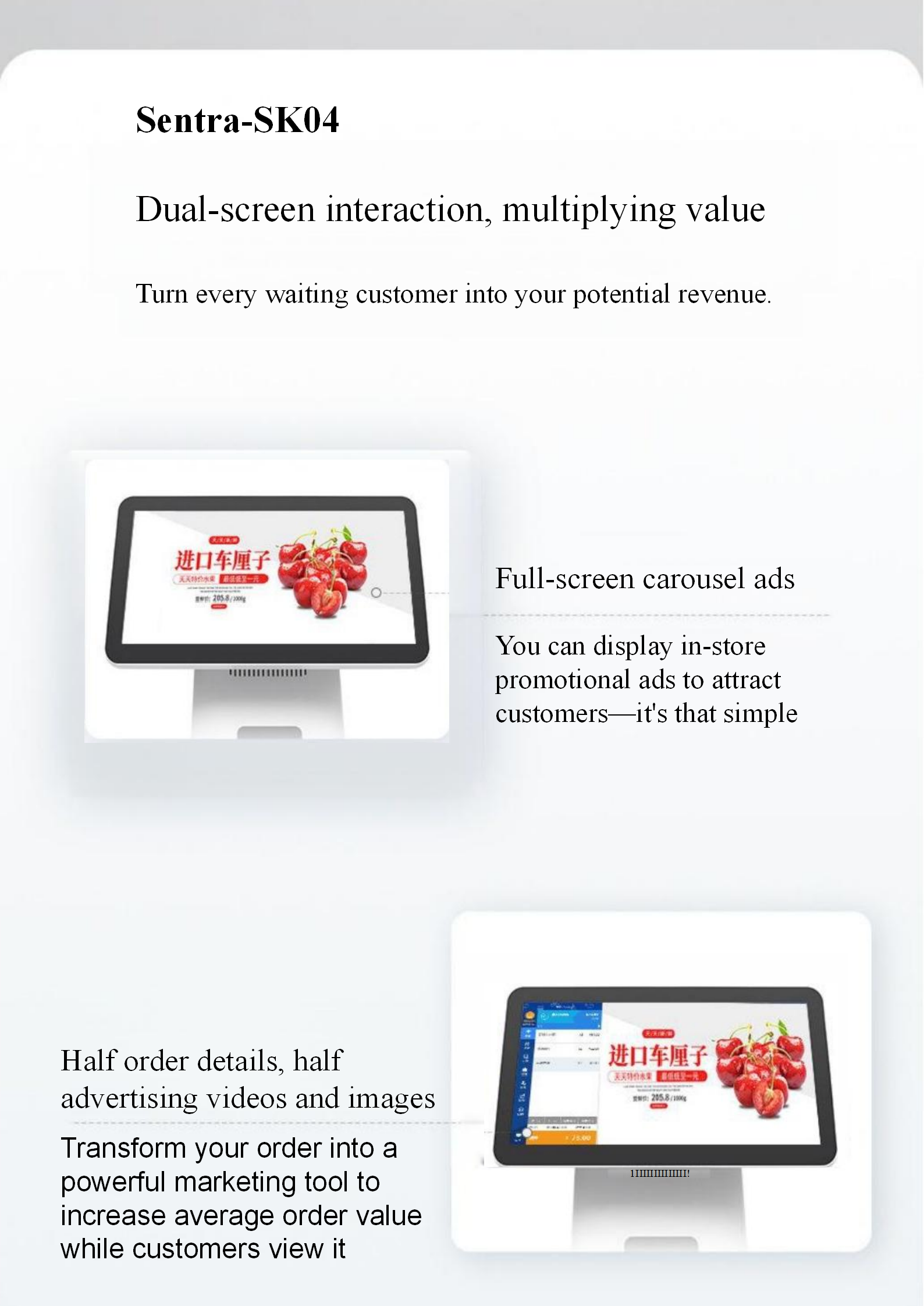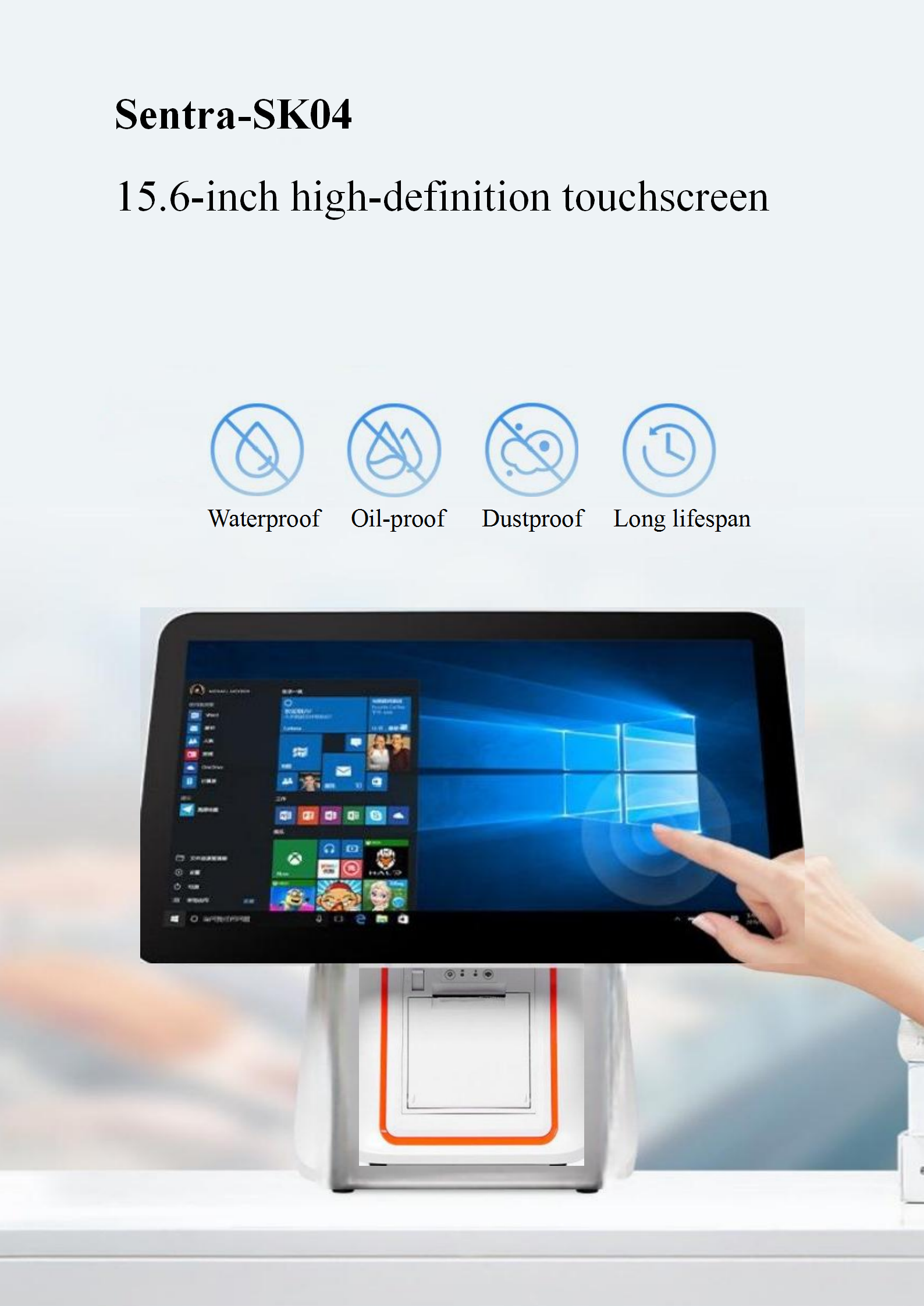 Sentra SK04 Single/dual-screen Touch POS Cash Register System, Capacitive Touch Display Screen, Built-in Printer